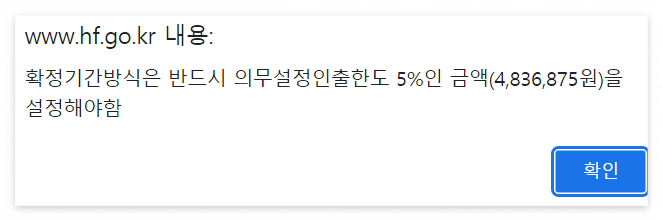 ▼ 참고로 대출상환방식의 경우 인출한도설정금액 가능범위가 있습니다. 맞지 않는 금액을 입력하면 아래와 같이 경고창이 뜨니 이 금액을 참고하여 범위 내로 입력하시면 됩니다.